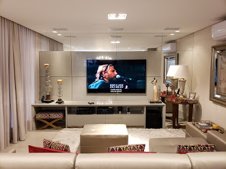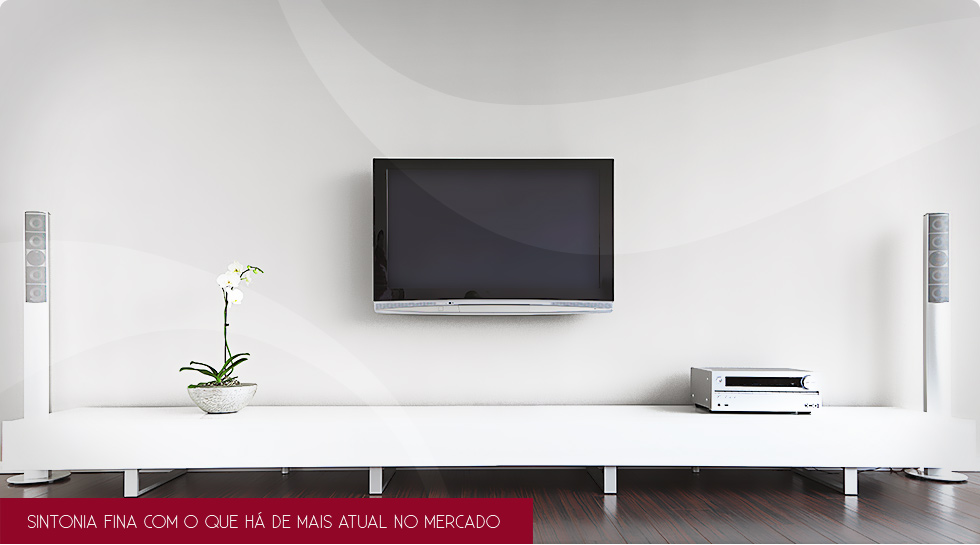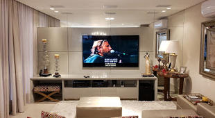 Televisor 75", sistema de som embutido Loud e Subwoofer Kef