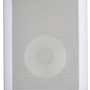 Caixa de som para embutir de 2 vias, sistema de montagem Baffle e Frame, tela frontal em alumínio microperfurada com pintura eletrostática em poliéster, exclusivo divisor de frequências, com corte de altas frequências em -3 dB e também de médias frequências.