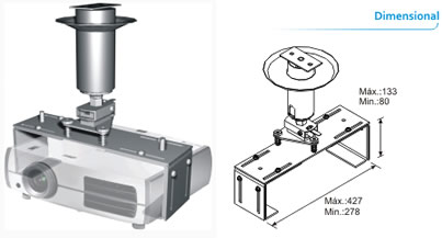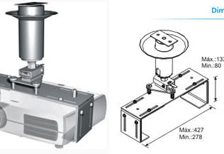 Único com isolamento elétrico, sistema de engate rápido, permite a retirada do projetor facilmente, passagem de cabos, pequeno, pintura eletrostática, atende todos os projetores LCD e DLP.
