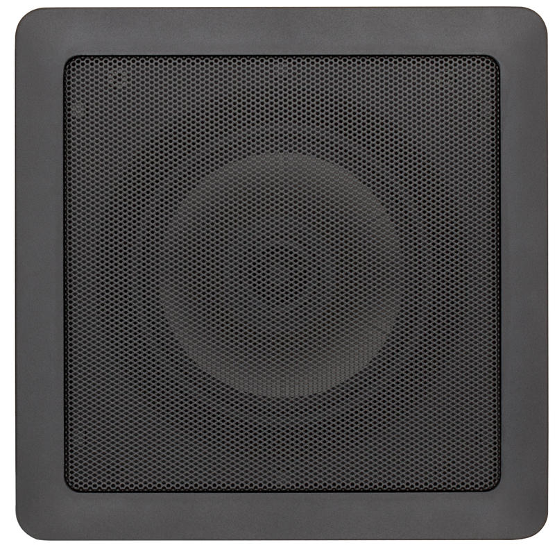 Caixa de som de embutir, 2 vias, sistema de montagem Baffle e Frame, tela de alumínio microperfurada, woofer de 5” com cone de polipropileno metalizado titanium, tweeter com cone de policarbonato e pastilha de neodímio.